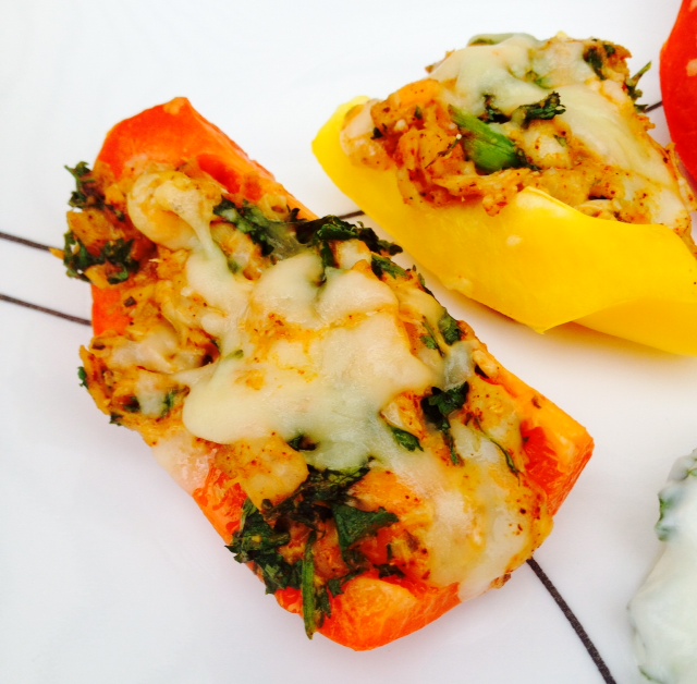 I went to a Pampered Chef party a couple of months ago and this was the recipe that we watched the host demo. I was already impressed by how easy they were to make but when I tasted them, I was really sold. A fresh pepper boat is covered in a spicy, creamy chicken mixture, topped with cheese and broiled. Then you drizzle them with a cilantro cream sauce, although I also think dipping them into guacamole would be fabulous. Everyone went totally crazy over them and they were such a fresh, delicious appetizer. I made them at home soon after, making some adaptations for what I had on hand. They made for a light, healthy meal and going into summer I think they would be perfect for just about any occasion.