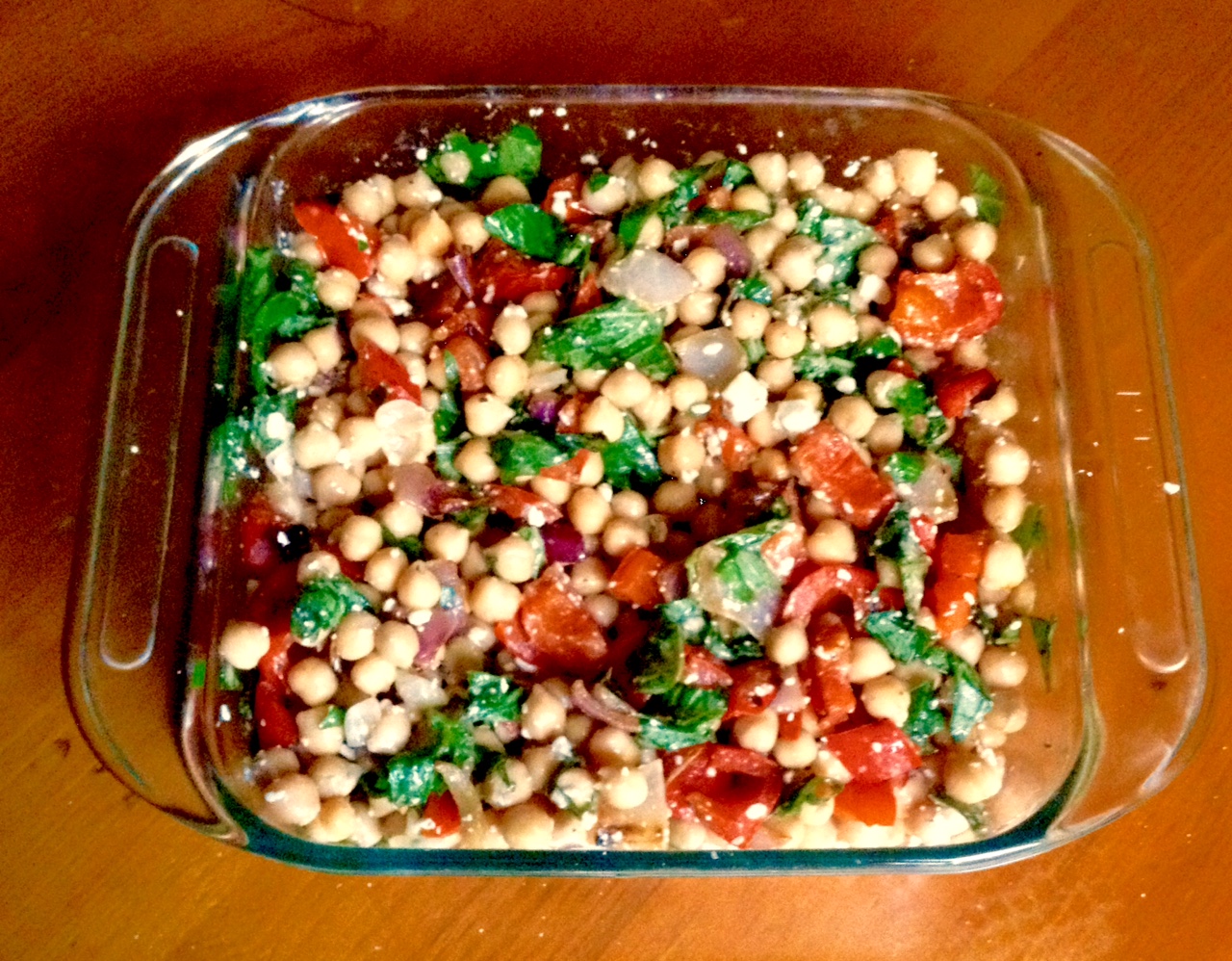 Welcome to the latest installment of “What I Eat When I Don’t Have to Cook for a Man”. No meat, lots of veggies and even more cheese. I love, love, love changing up my salad game and I had to show you this one because it was kind of a throw-together but totally knocked my socks off. What I love most about it is that I made it on a Tuesday and had the rest in the fridge for easy lunches and dinners for the rest of the work week. This just gets better and better on day 2 and beyond. I’m sure you don’t even have to roast the peppers and onions but I love the extra flavor it gives. Another suggestion: throw a few pita chips on the side. The perfect lunch!